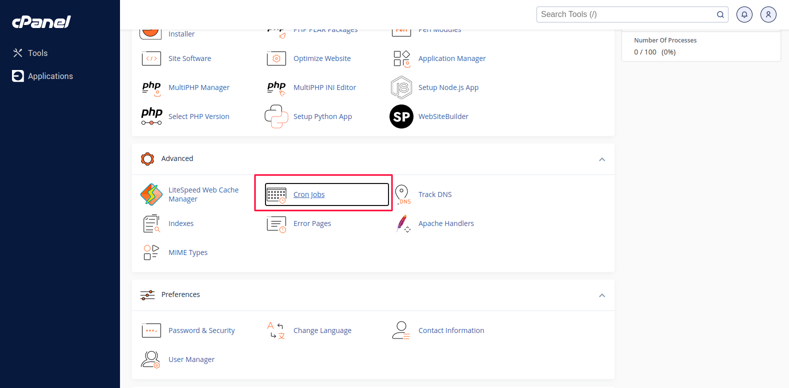 Firstly search for the "Cron Jobs" option and go inside the section from cpanel. The following image will give you an idea of finding cron job options.