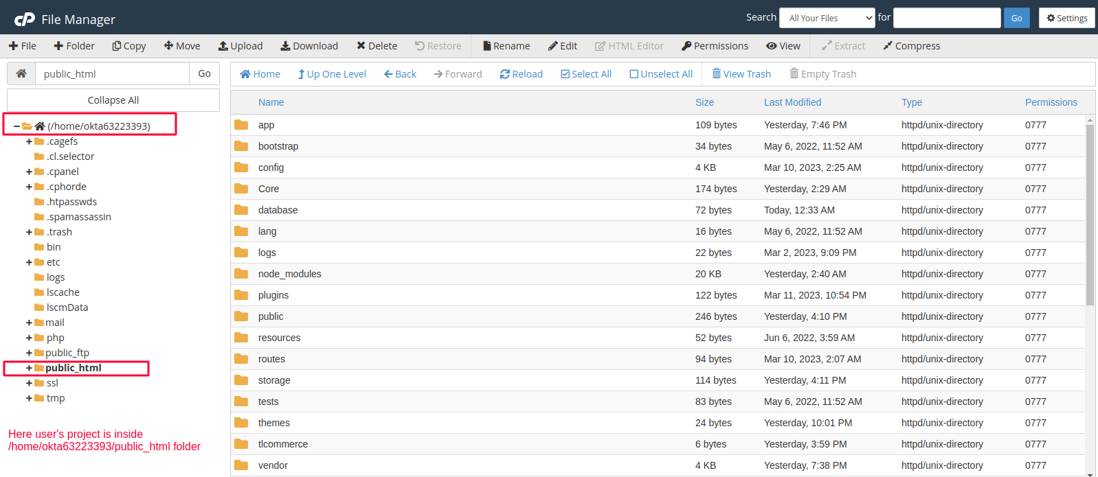 For example, if user project's root directory looks like the following image